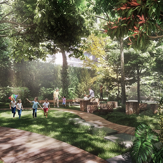 A blend of social housing, senior living, extended care, a nursery, and a community center fostering interaction and socialization among people of all ages, set within a welcoming environment. Enjoy additional luxuries such as a Clubhouse, Spa, serene Forest Trail, Yoga Deck, and a refreshing Swimming Pool.